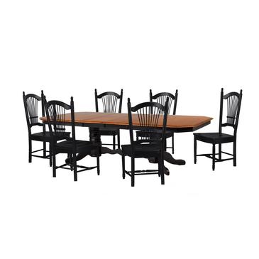 Sunset Trading 7 Piece Double Pedestal Trestle Butterfly Leaf Dining Table Set W Allenridge Chairs