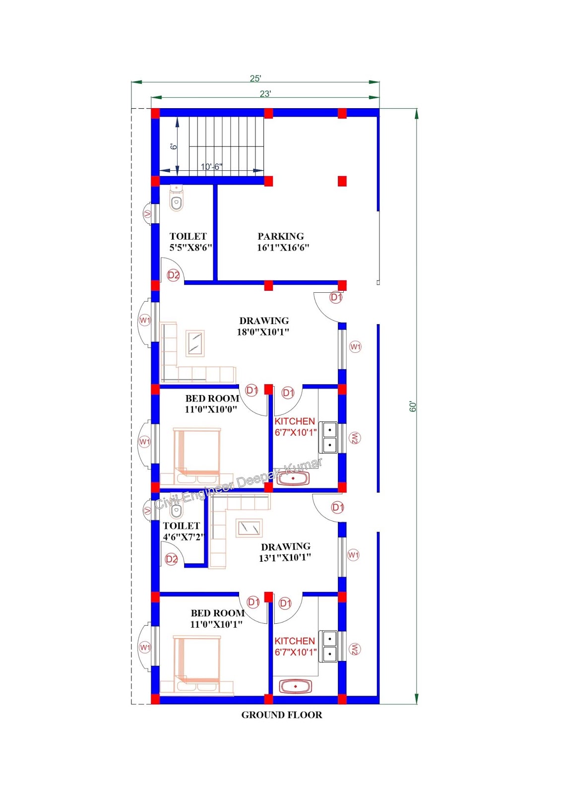 Civil Engineer Deepak Kumar 23 X 60 Feet House Plan For Rent Purpose Plot Area 25 X 60 Feet