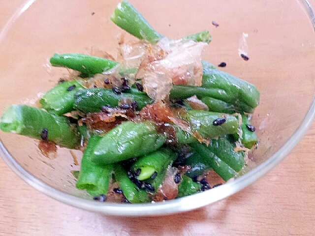 お弁当に 冷凍インゲンの花かつお 黒ごま和え レシピ 作り方 By Megmako 楽天レシピ