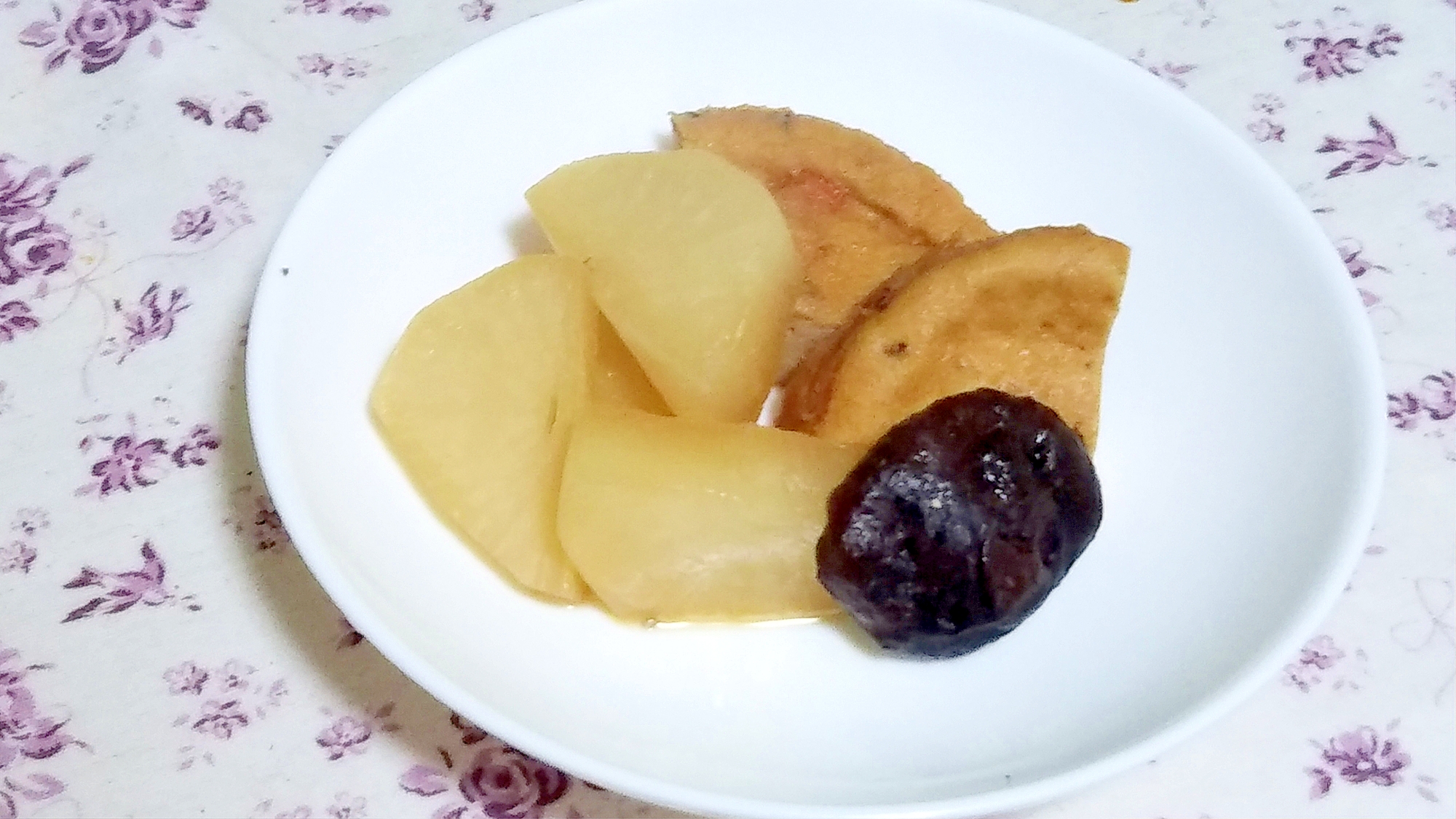じゃがいも さつま揚げの麺つゆ煮 Minha Praia