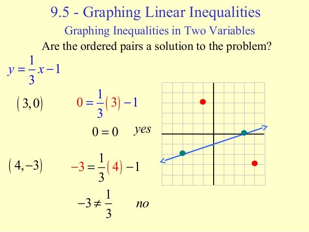 Section 6 5 Linear Inequalities Is The Ordered Pair A Solution For Y X 3 A 1 2 How Do We Know If 1 2 Is A Solution Y X 3 Ppt Download