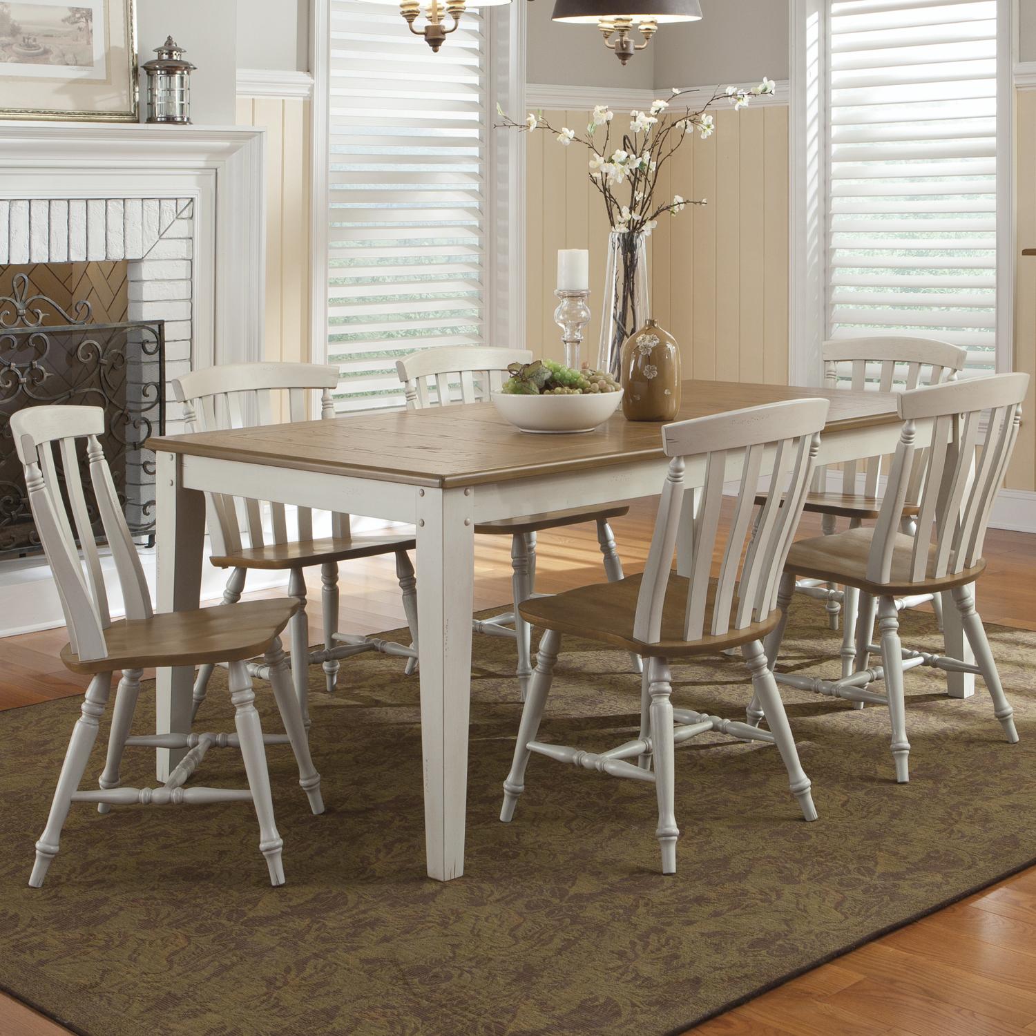 Amesbury Chair Farmhouse White And Chestnut 36x48x60 Solid Hardwood Butterfly Leaf Table With 6 Windsor Chairs Dinette Depot Casual Dining Room Groups