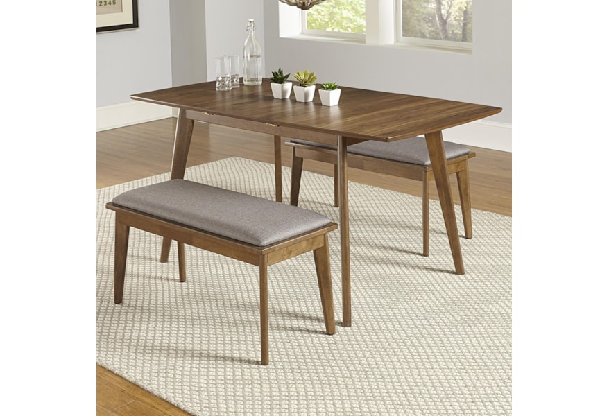 Progressive Furniture Arcade Mid Century Modern 3 Piece Butterfly Table Set With 2 Benches And Self Storing Leaf Lindy S Furniture Company Table Chair Set With Bench