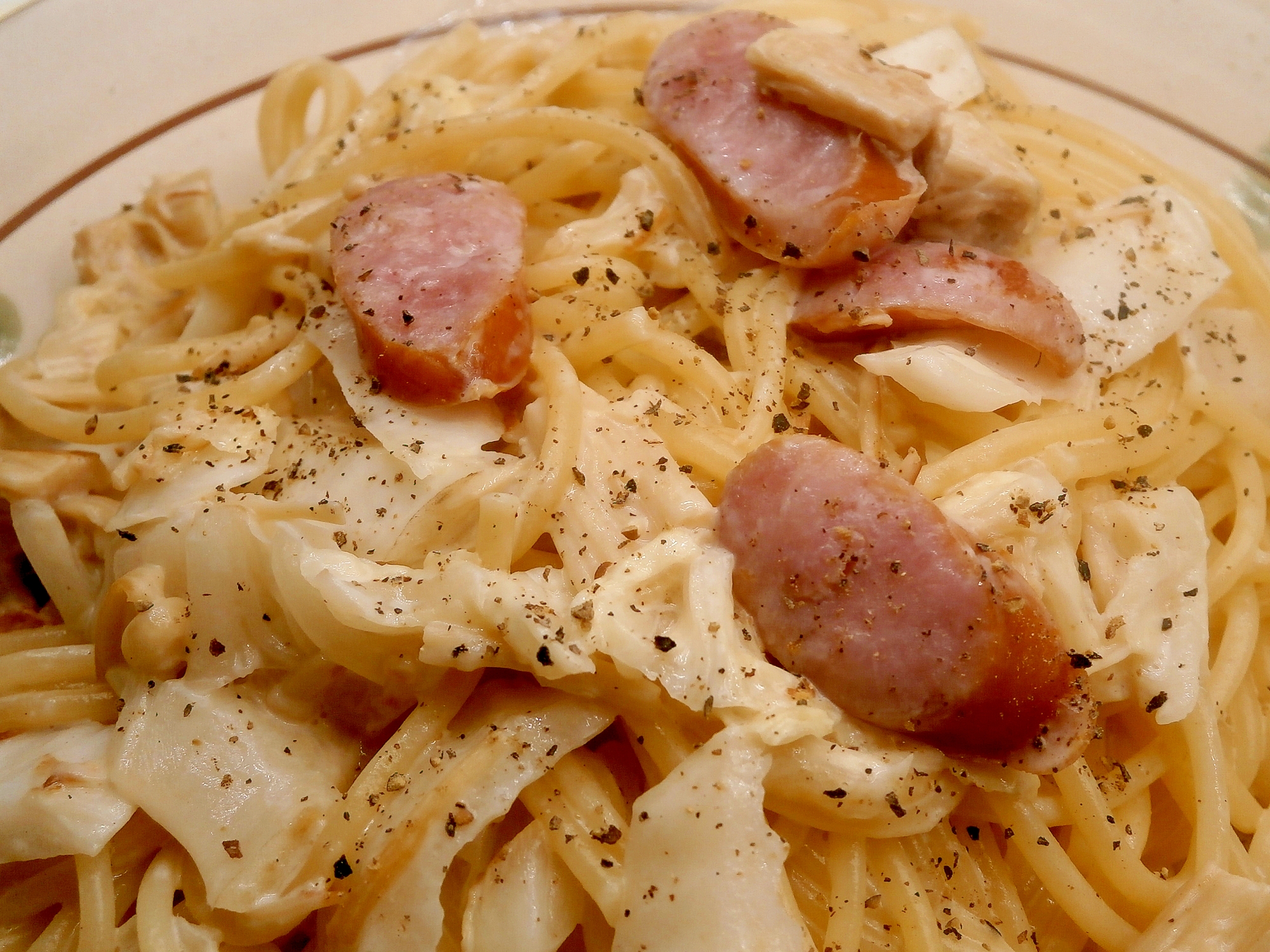 白菜とソーセージのクリームチーズパスタ レシピ 作り方 By まき小屋 楽天レシピ