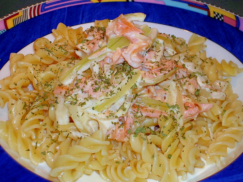 スモークサーモンの豆乳クリームチーズパスタ ふじたかなの いつも美味しい もの探し