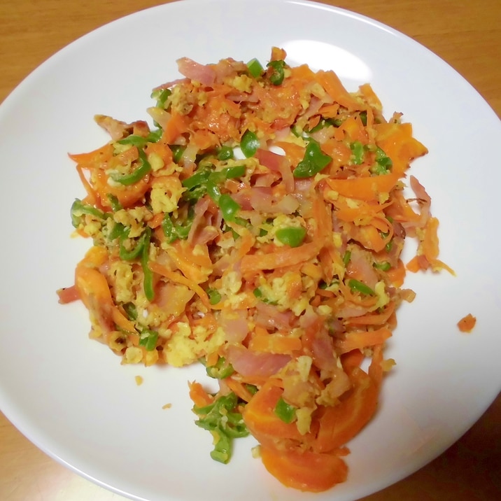 ピーマンと人参とベーコンの卵炒め レシピ 作り方 By みぽりん9215 楽天レシピ