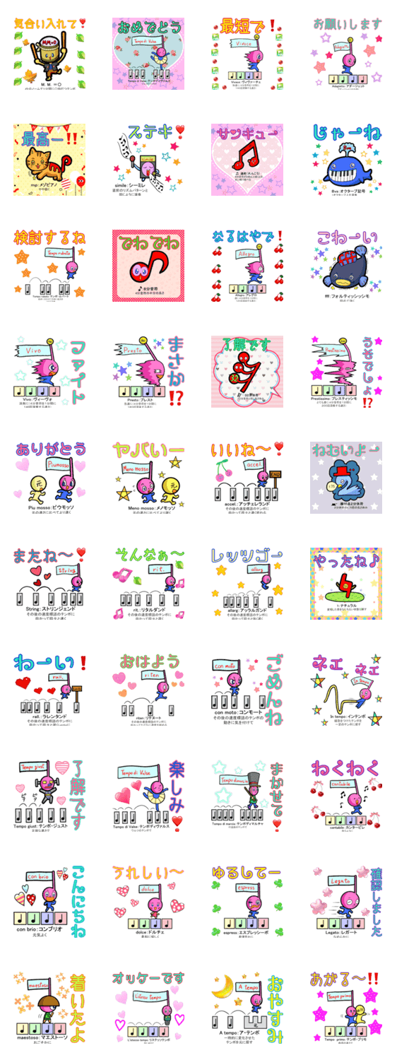 音楽記号、演奏記号、楽器を使用したスタンプです。 音符たちが走り回ります lineスタンプpremium デラックスコース新登場。クリエイターズ絵文字も5万種類以上が使い放題!さらに5個以上の保有制限がなく最大1,000個まで保有可能. 分かる人には伝わる音楽記号のスタンプ第2弾です! lineスタンプpremium デラックスコース新登場。クリエイターズ絵文字も5万種類以上が使い放題!さらに5個以上の保有制限がなく最大1,000個まで保有可能. Lineスタンプ 突然ですが、皆さんはlineスタンプを使っていますか? 次つぎと新しいものが出てくるので、ついつい買っちゃうという方も多いのでは? 今回ご紹介するのは、音楽記号のlineスタンプ。 一見地味ですが、これが面白すぎる!.