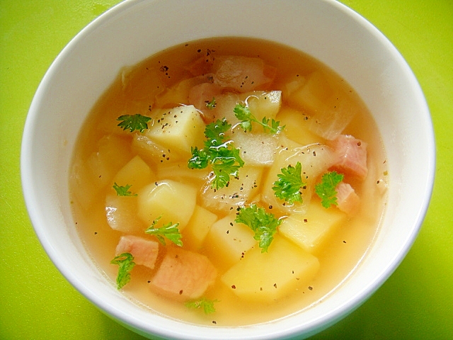 コロコロじゃがいもと玉ねぎベーコンのコンソメスープ レシピ 作り方 By Mint74 楽天レシピ