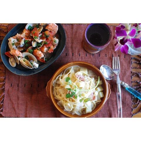 ペスカトーレとマッシュかぼちゃのサラダ じゃがいも入りミネストローネのスープパスタ フードライター浅野陽子の 美食の細道