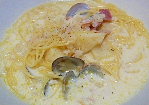 ベーコンと5種野菜のクリームスープパスタ 神戸 灘でパスタ スパゲッティとワインが美味しいパスタ専門店 パッセジャーレ