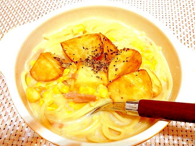 コーンクリームパスタ カリッとジャガイモ乗せ レシピ 作り方 By Ri525 楽天レシピ