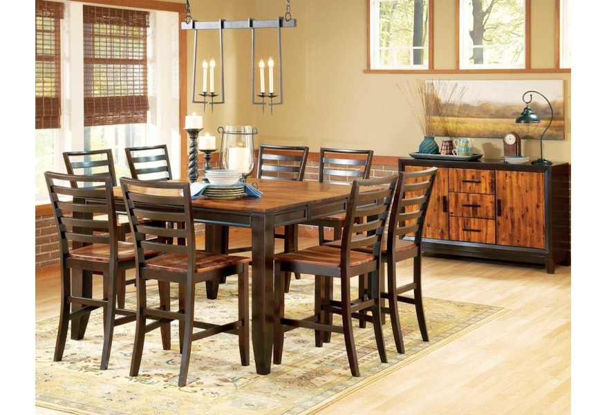 Manchester Dark Brown High Low Square Dining Table W Butterfly Leaf By Jofran Furniture
