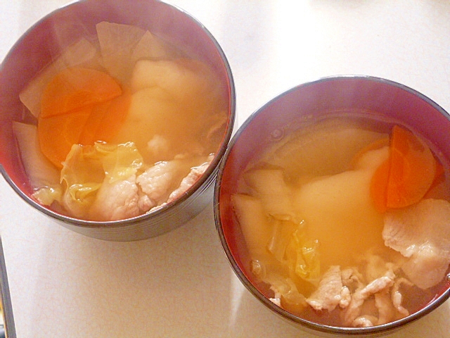 和む味 丸大根と豚肉とにんじんと白菜のお雑煮 レシピ 作り方 By みずたまsweet 楽天レシピ