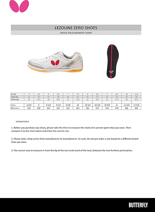 Smart play at variable distance Jun Mizutani chooses the combination of Dignics 80 and the desirable bounce blade Mizutani Jun ZLC As Dignics 80 has an excellent balance between speed and spin, you can easily decide whether to block or counter depending on the speed of the opponent’s ball. You can use our website with confidence knowing we have bank grade security across the whole website and are PCI DSS compliant. Butterfly Table Tennis Shoes Size Chart Insole Measurement of Butterfly Shoes Lezoline,.