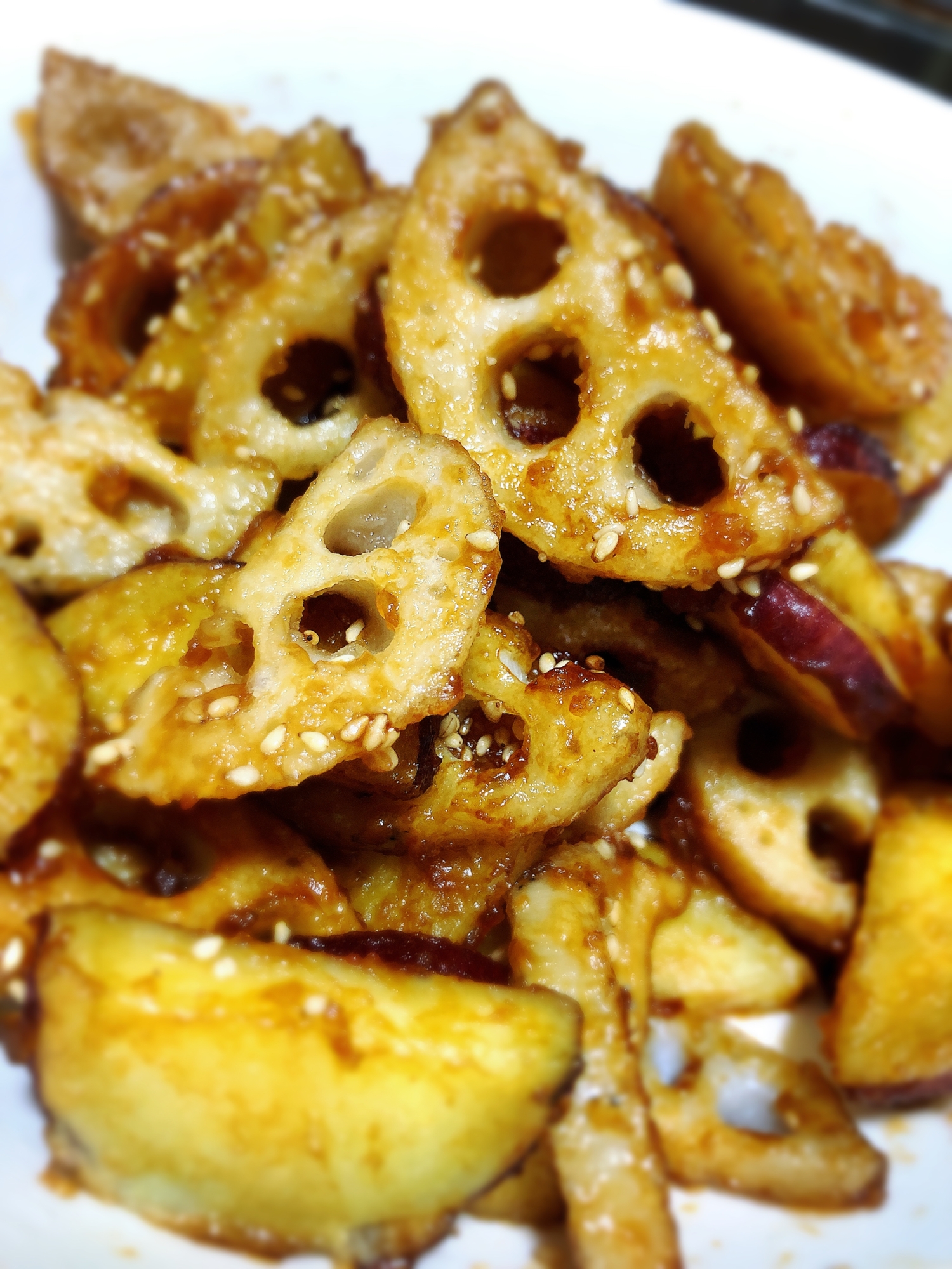 レンコンとサツマイモの甘辛炒め By K Gohanさん レシピブログ 料理ブログのレシピ満載