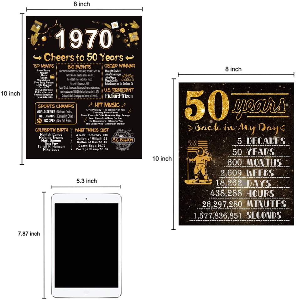 Amazon Com 50th Birthday Decorations 2 Pack 8 5 X 11 Wedding Anniversary Class Reunion Centerpiece Card Gifts For Women Men Husband Or Wife 50 Years Back In 1970 Sign 50 Years 1970 Posters Prints