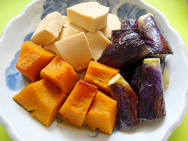 高野豆腐とかぼちゃ揚げ茄子の煮物 レシピ 作り方 By Mint74 楽天レシピ