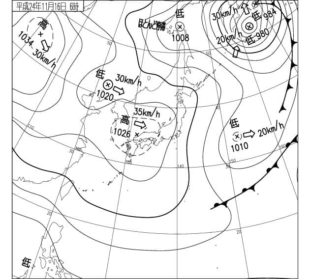 過去の実況天気図 年11月16日 日本気象協会 Tenki Jp