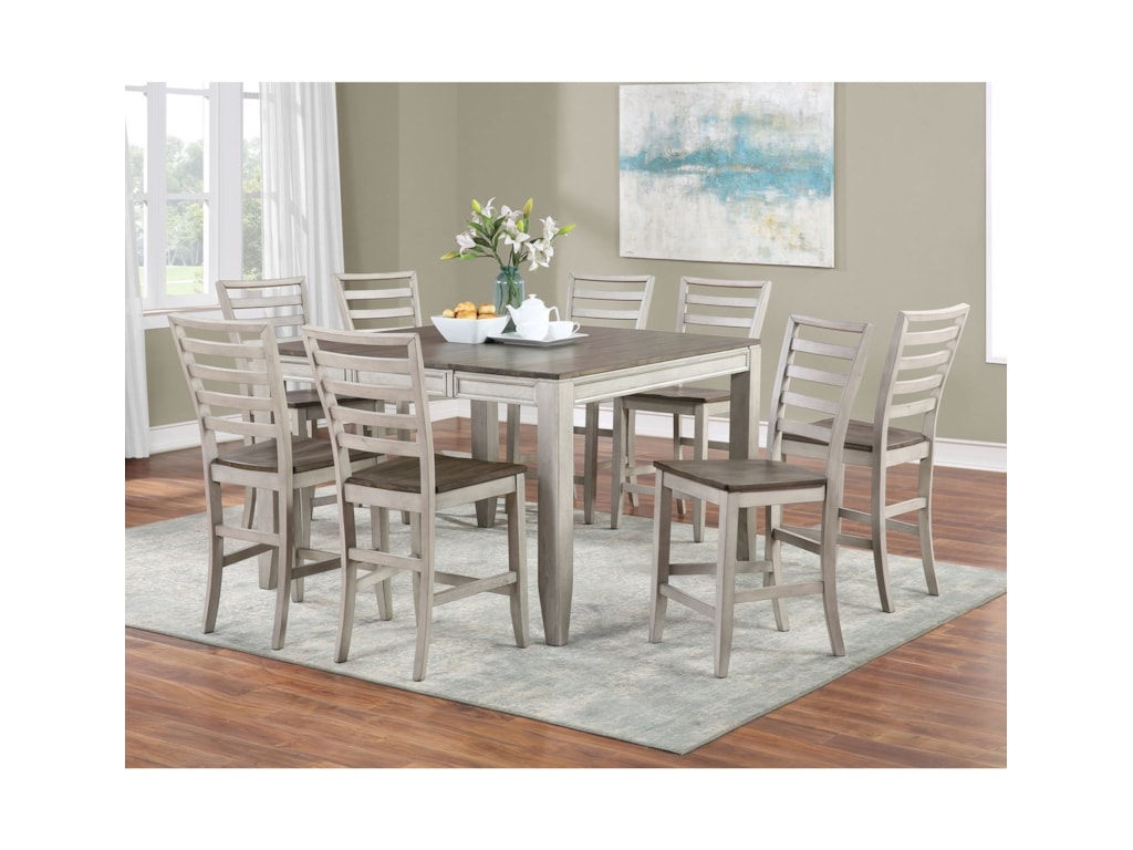 Steve Silver Abacus Casual 9 Piece Counter Table And Chair Set With Butterfly Leaf A1 Furniture Mattress Pub Table And Stool Sets