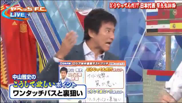 動画 やべっちfcで中山雅史が自虐ネタを交えて日本代表のスイス戦を解説 名波さんのノールックパスを僕が感じてなくて