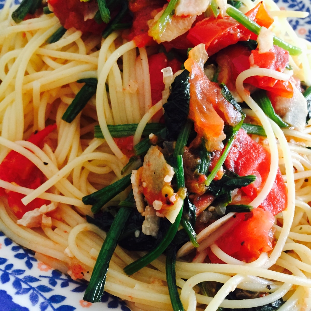 ほうれん草とベーコンのトマトスパゲティ 作り方 レシピ クラシル