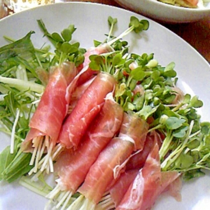 カイワレの生ハム巻き イタリアンドレッシングで レシピ 作り方 By Ta16 楽天レシピ
