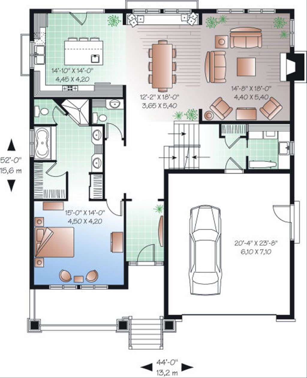 Smaller homes allow Baby Boomers to relax and downsize after their kids have flown from the nest. Main roof pitch 5/12 Ridge height 16' Wall height 10' Foundation Slab Lap siding, shakes siding, & vinyl siding This plan is in PDF format so you can download, and print whenever you like Plan prints to scale on 24" x 36" paper. New House Design 12×14 Meter 40×46 Feet 2 Beds New House Design 12×14 Meter Ground Floor Plans Has Firstly, 2 car Parking is at the right side of the house A nice Terrace entrance in front of the house size 15×45 meters.