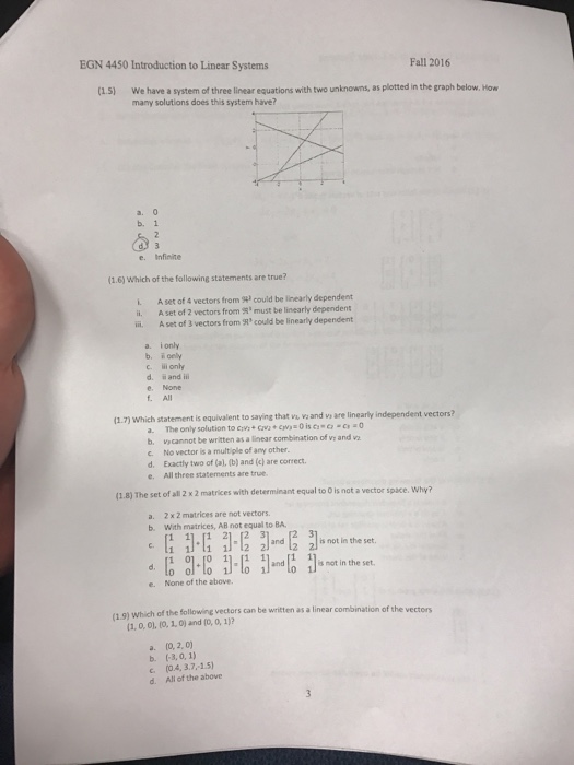 Solved We Have A System Of Three Linear Equations With Tw Chegg Com