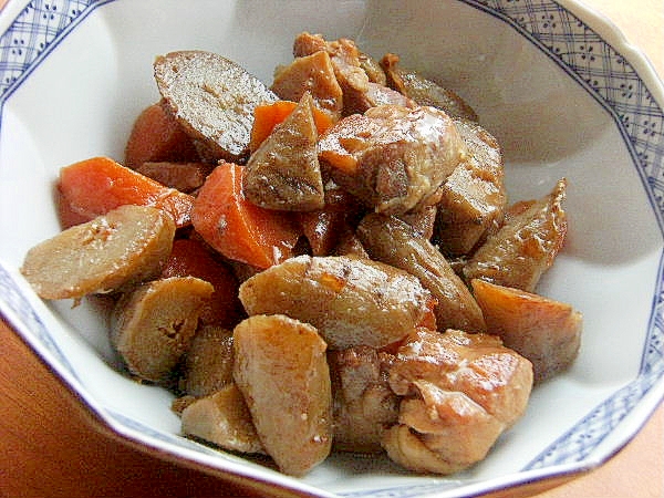 お弁当にも 新ごぼう 鶏もも肉の煮物 人参 レシピ 作り方 By ジョン リーバス 楽天レシピ