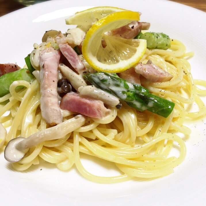 アスパラとベーコンのレモンクリームパスタ レシピ 作り方 By ちゅんまやっち 楽天レシピ