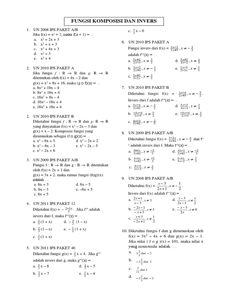 Soal Fungsi Invers Dan Fungsi Komposisi
