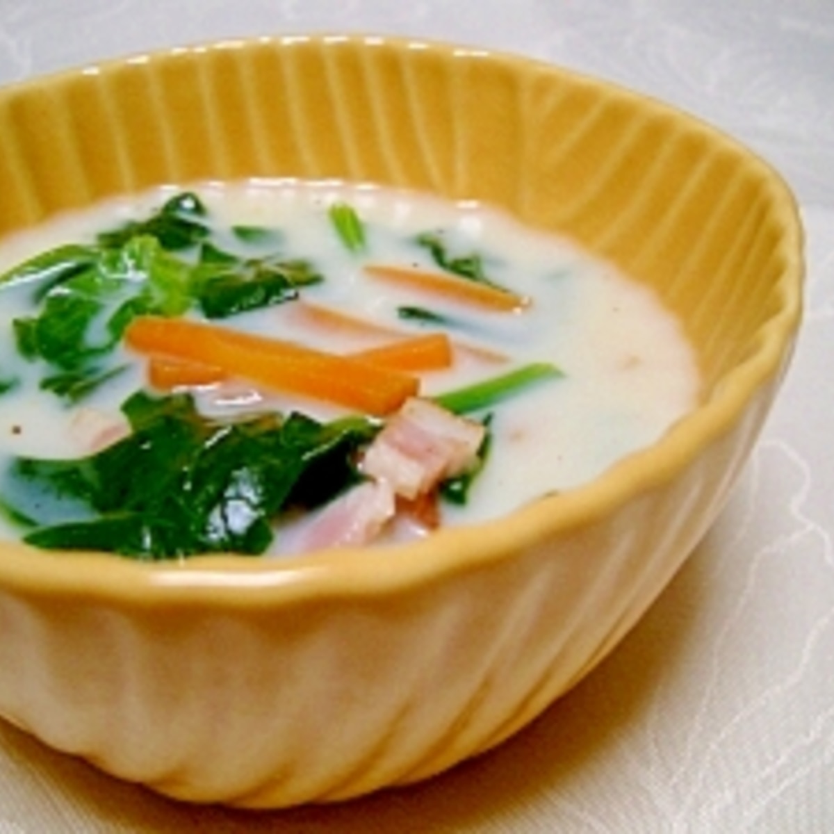 ほうれん草とベーコンのミルクスープ 通勤ウォーカー