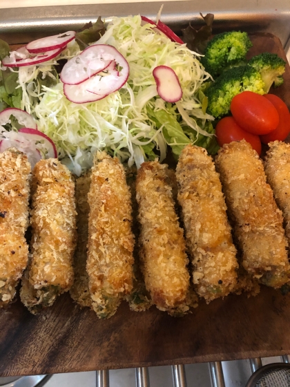 いんげんのチーズ入り肉巻きフライ 稼ぎが少ない夫と妻の節約生活