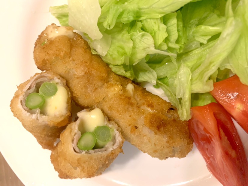 アスパラの豚肉ロールフライ とろ りチーズの豚肉フライ 魚屋三代目日記