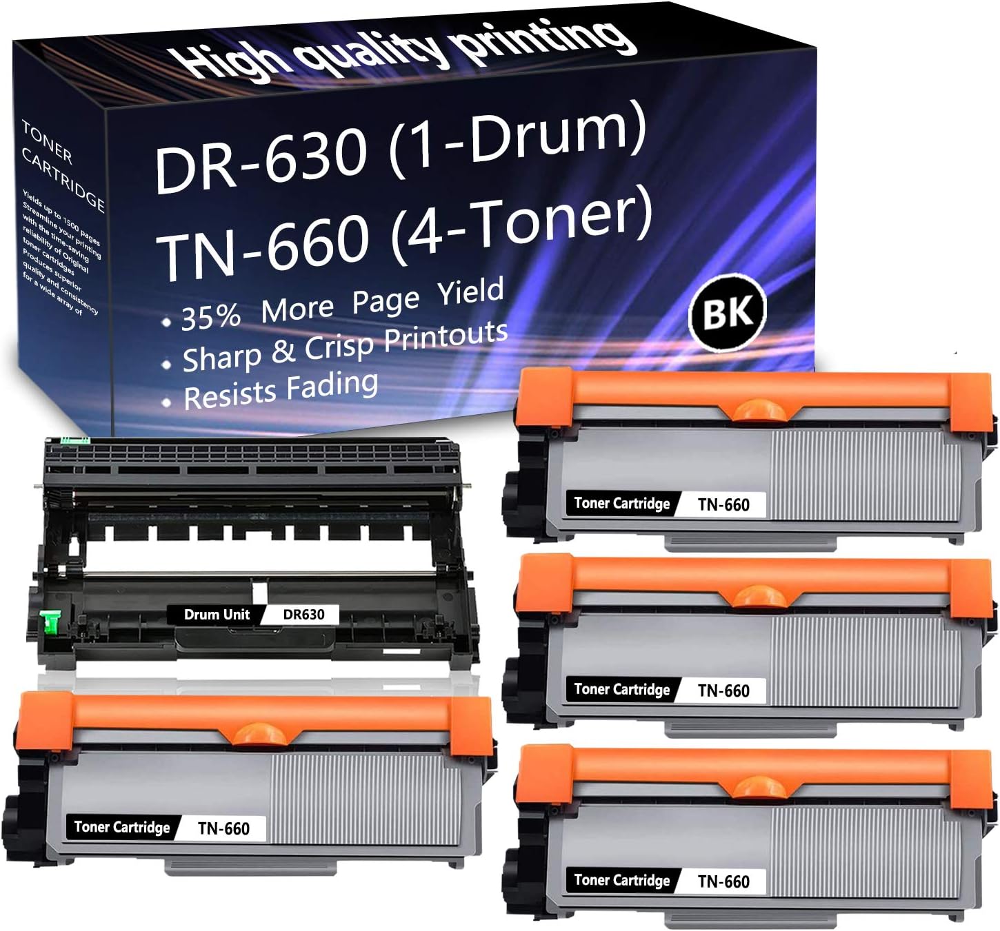 Amazon Com 5 Pack 1drum 4toner Dr630 Drum Unit And Tn660 Toner Cartridge Replacement For Brother Hl L2300d L2315dw L2360dw L2380dw Mfc L2680w L2685dw L2700dw L2740dw Dcp L25dw L2540dw Printers Office Products