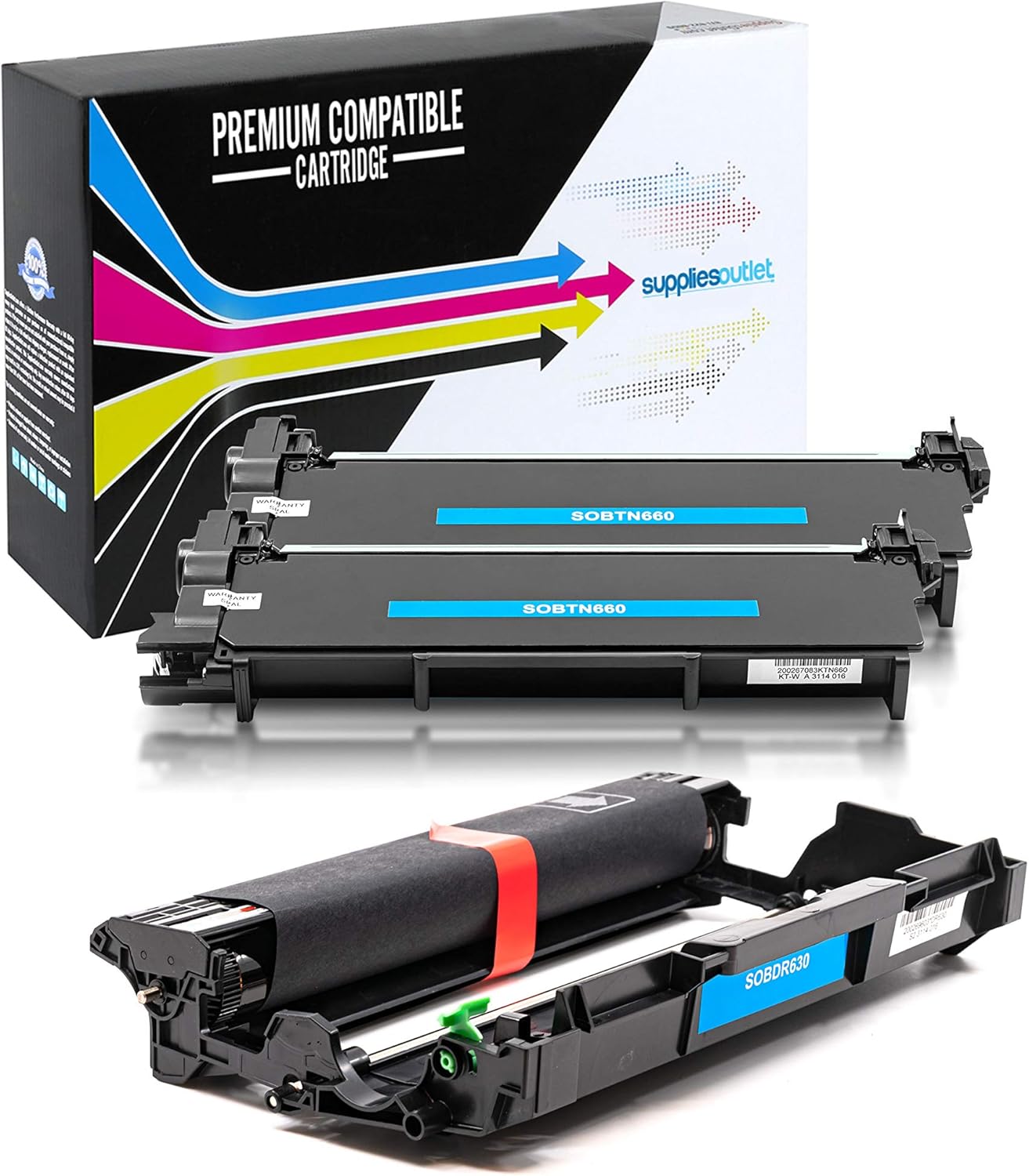 Amazon Com Suppliesoutlet Compatible Toner Cartridge And Drum Unit Set For Brother Tn660 Tn 660 Dr630 Dr 630 2 Toner 1 Drum Office Products