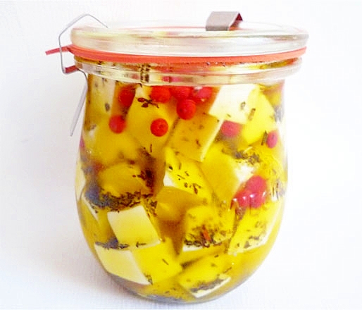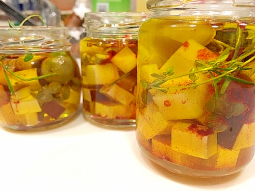 瓶に入れるだけで簡単に作れる チーズのオイル漬け 家ワイン