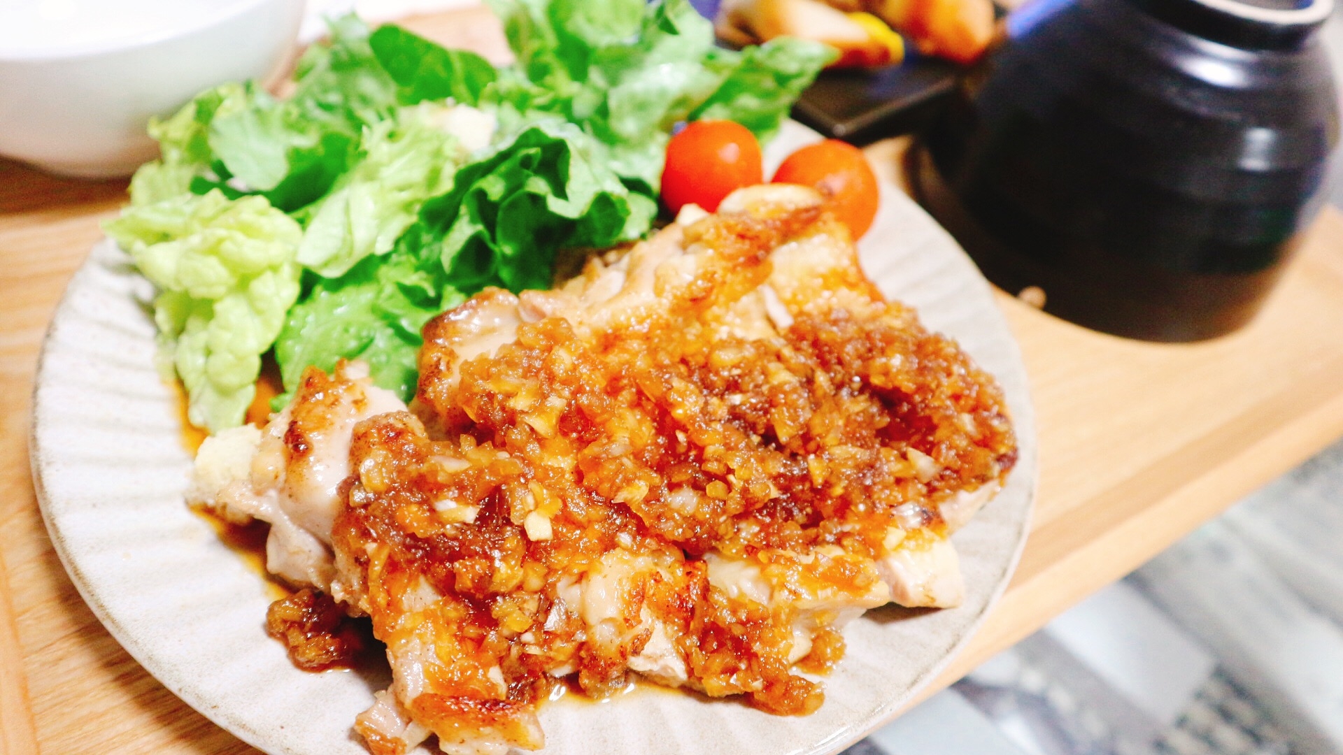 パリッパリジューシーガーリックチキンソテー 玉ねぎソース添え By しゃなママさん レシピブログ 料理ブログのレシピ満載