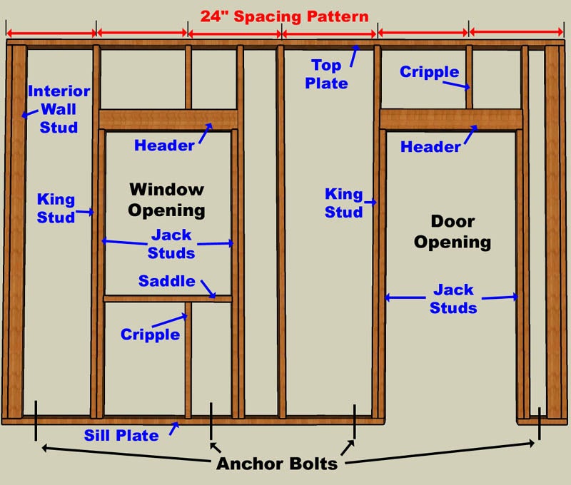 2x6 walls are bigger than 2x4 walls They're harder to lift and the headers on exterior walls require more work Great builders add 25 inches of closedcell foam to the headers over windows and doors to help cut down on energy bills. Wall plates A wall is a collection of studs (usually sized 2×4 or 2×6) equally spaced (usually 16 in or 24 in on center) and sandwiched between top and bottom plates The top plate can be either single or double. A unique condition that exists in some interior walls is a staggered stud wall assembly, where 2×4 wood studs are installed on 2×6 top and bottom plates, with the studs alternating from one edge of the plates to the other This wall condition provides excellent acoustical performance.