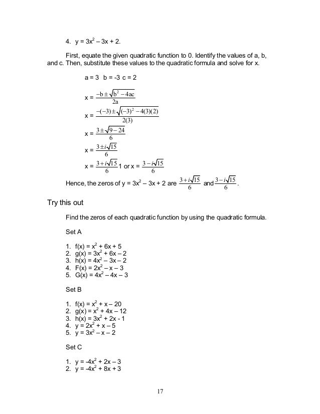 In this case a=1 (it is the coefficient that multiplying by the quadratic term x 2), b=3b=3 (the coefficient that multiplying by the linear term x), and c=1 (the constant) Example # 2 What are the coefficients now, if you have the following expression 5/4 3/4 x1/2 x 2. "x = 438, −038" Stepbystep explanation The equation to solve is a quadratic We take 17 to the other side and divide by 3 and solve by taking square root and be sure to take and solutions Hence, the solutions are x = 438 and 038. An equation x^x^3 = 3 and its embedding in wider class of equations that all have the same solution ad first sight surprisingly.