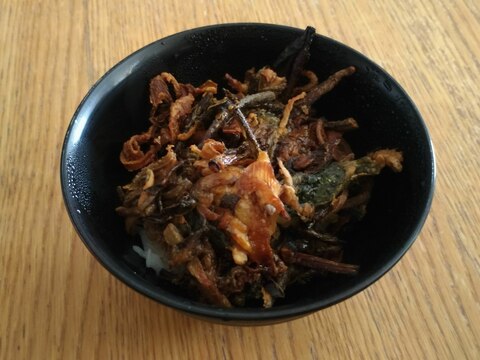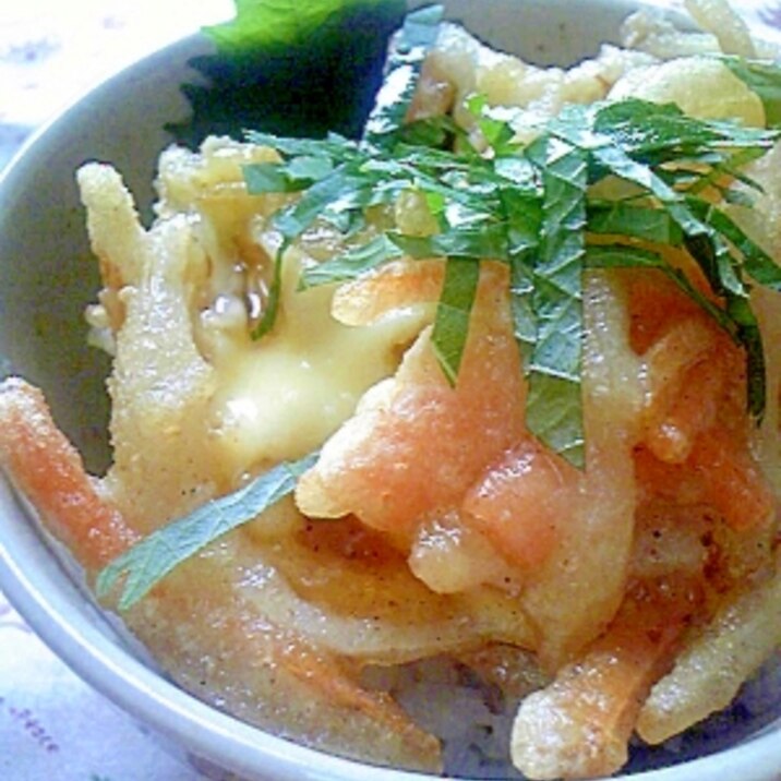 たれが旨い ささみと人参葉のかき揚げ丼 Mieuxkanon