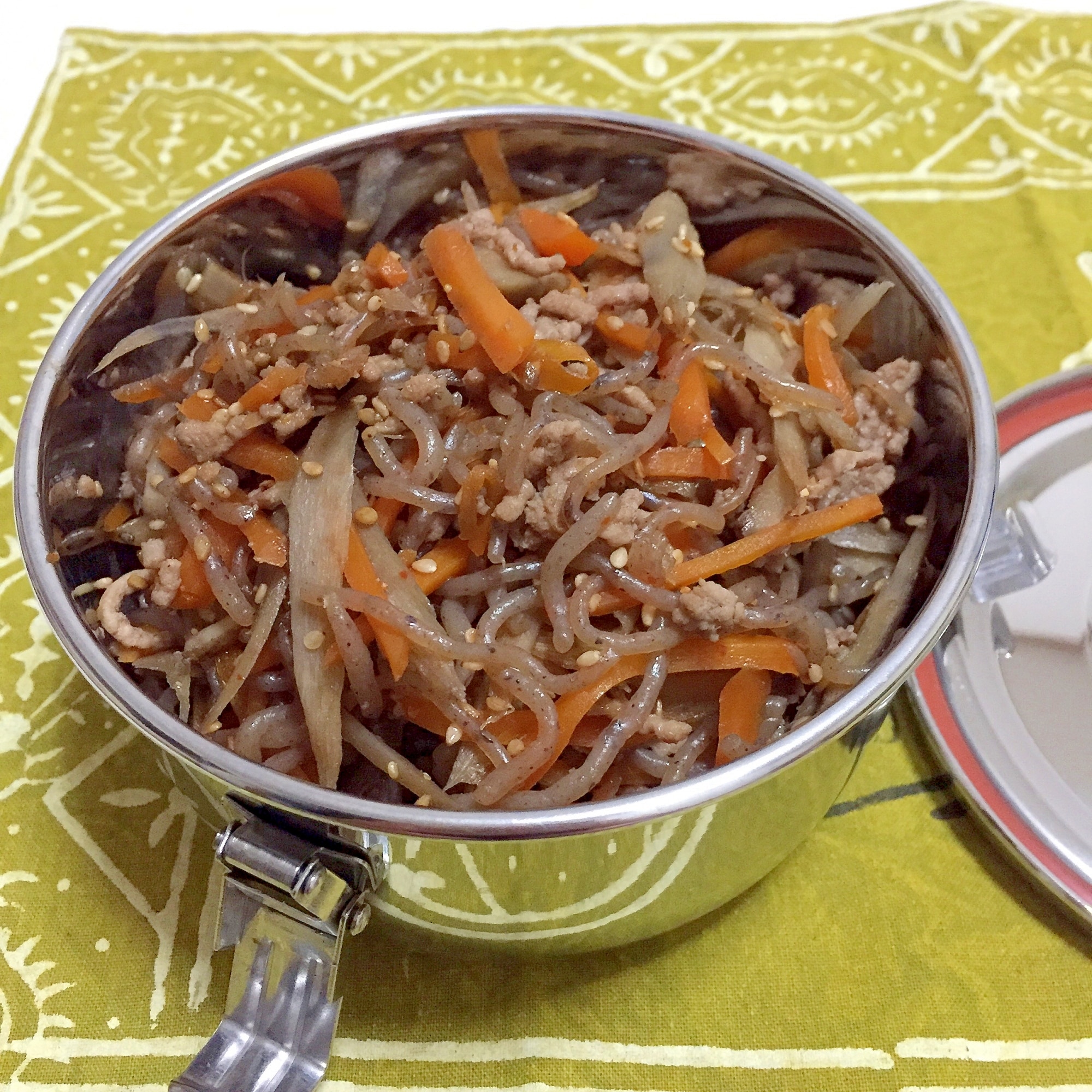 Rain V Twitter ごちそうきんぴら ごぼう にんじん の他に 豚肉 パプリカを入れて胡麻をたっぷり 味付けは砂糖 みりん 昆布つゆ ごま油 箸でわしっと掴めばご飯がすすむ お肉は牛肉 でもいいし セロリ 春雨 糸こんにゃく 水菜などもおすすめ 大皿の
