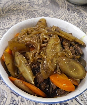 ごぼうと糸こんにゃく入り牛丼 食べぼや記 冒険レシピ