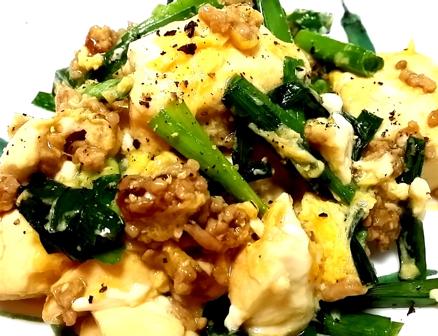 ひき肉と木綿豆腐のニラ玉炒め By 元料理人の時短レシピ レシピ レシピ 料理 レシピ 豆腐 レシピ