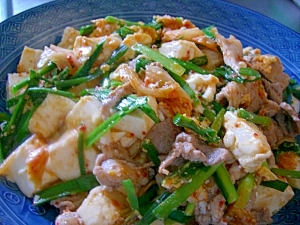 たっぷりにらが入った麻婆豆腐 サントリー レシピッタ あなたにぴったり お酒に合うかんたんレシピ