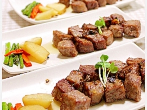 サイコロステーキガーリック醤油ソース レシピ 作り方 By Mane11 楽天レシピ