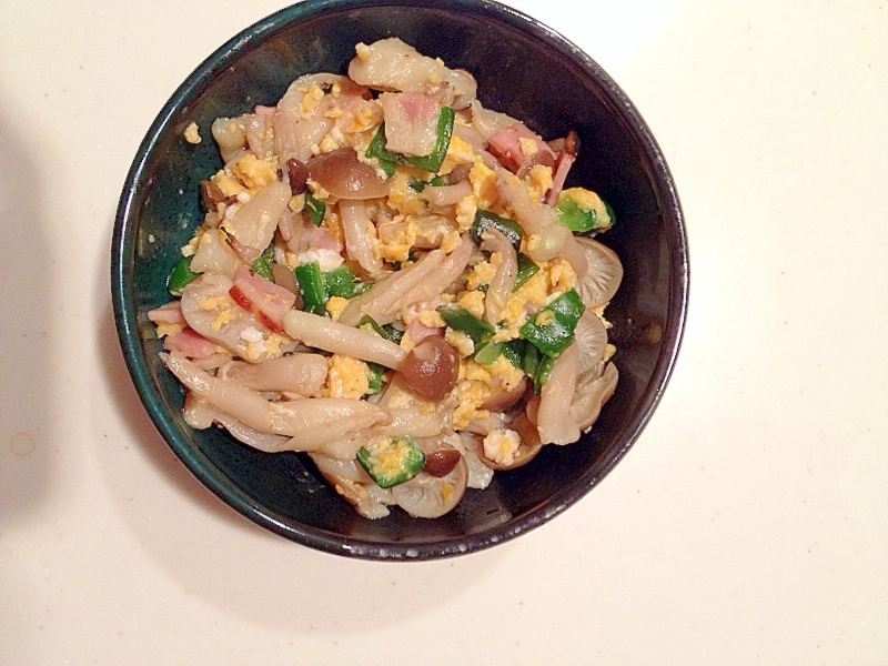 しめじとベーコンとピーマンの卵炒め レシピ 作り方 By みゅうしろ 楽天レシピ