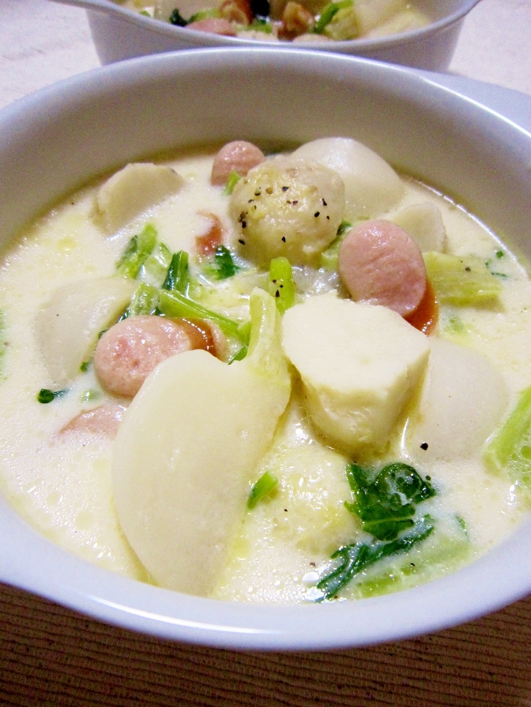 かぶとウインナーのミルクスープ だいどこログ 生協パルシステムのレシピサイト
