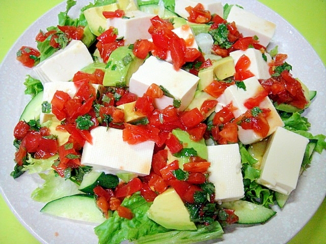 豆腐とアボカドの大葉トマトドレッシングサラダ レシピ 作り方 By Mint74 楽天レシピ