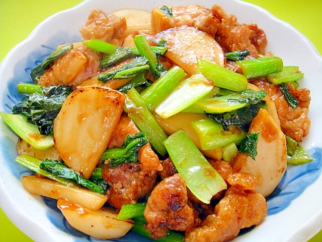カブと鶏肉小松菜の甘辛七味炒め レシピ 作り方 By Mint74 楽天レシピ